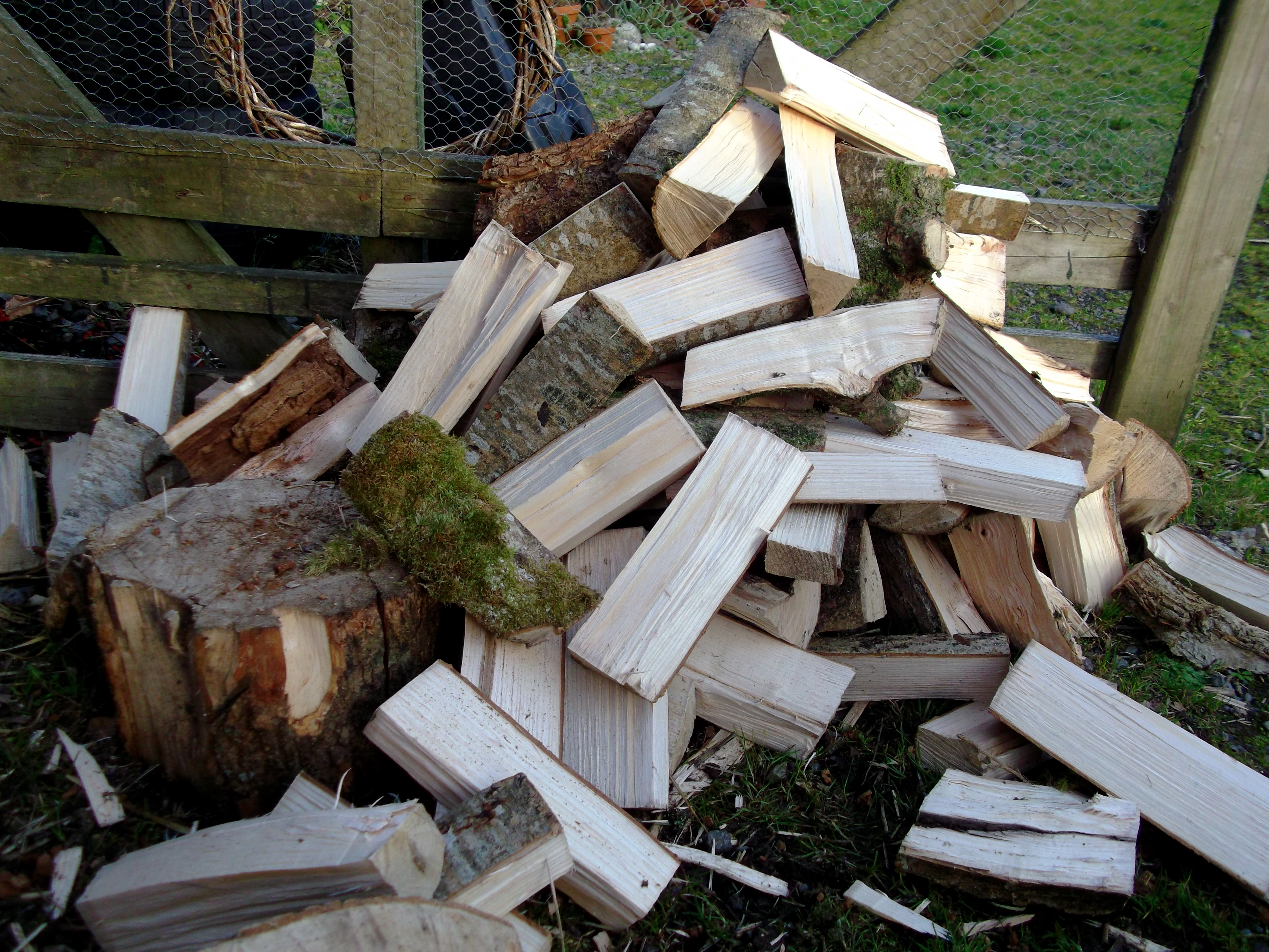 Splitting logs of Ash for use in the stove this winter. This wood is easy to grow and easy to harvest if continuously coppiced. Ash, if coppiced, can grow steadily for 2,000 years and more. Ash can be burned in the green, that is, on the day it is cut. It is the perfect the perfect permaculture fuel!