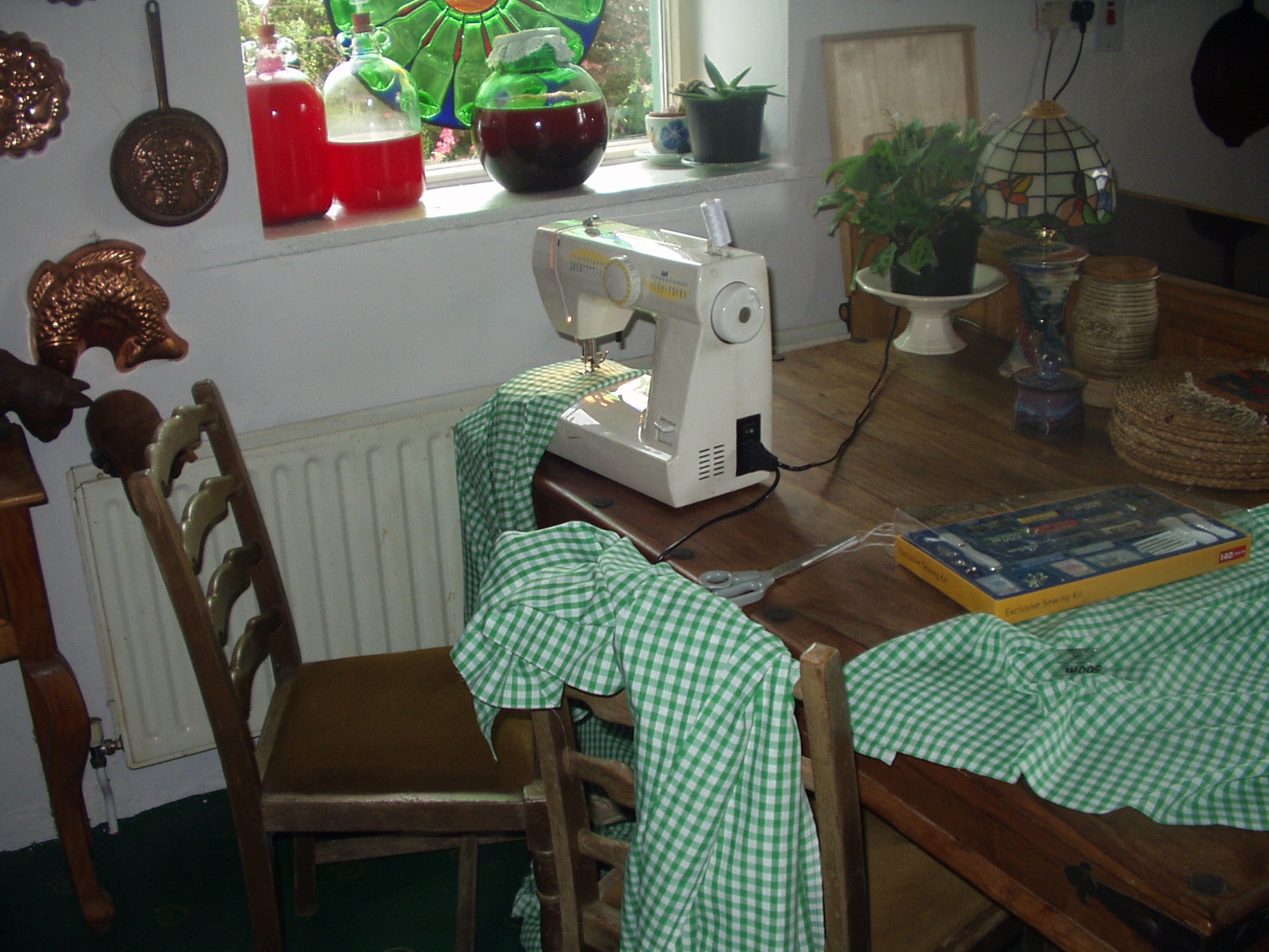 A mass of green gingham fell into my lap, enough for the job, so I set about sewing and hanging…