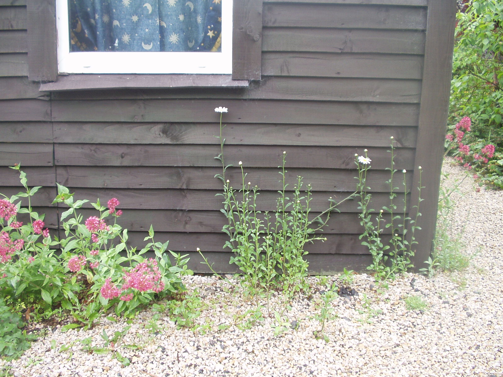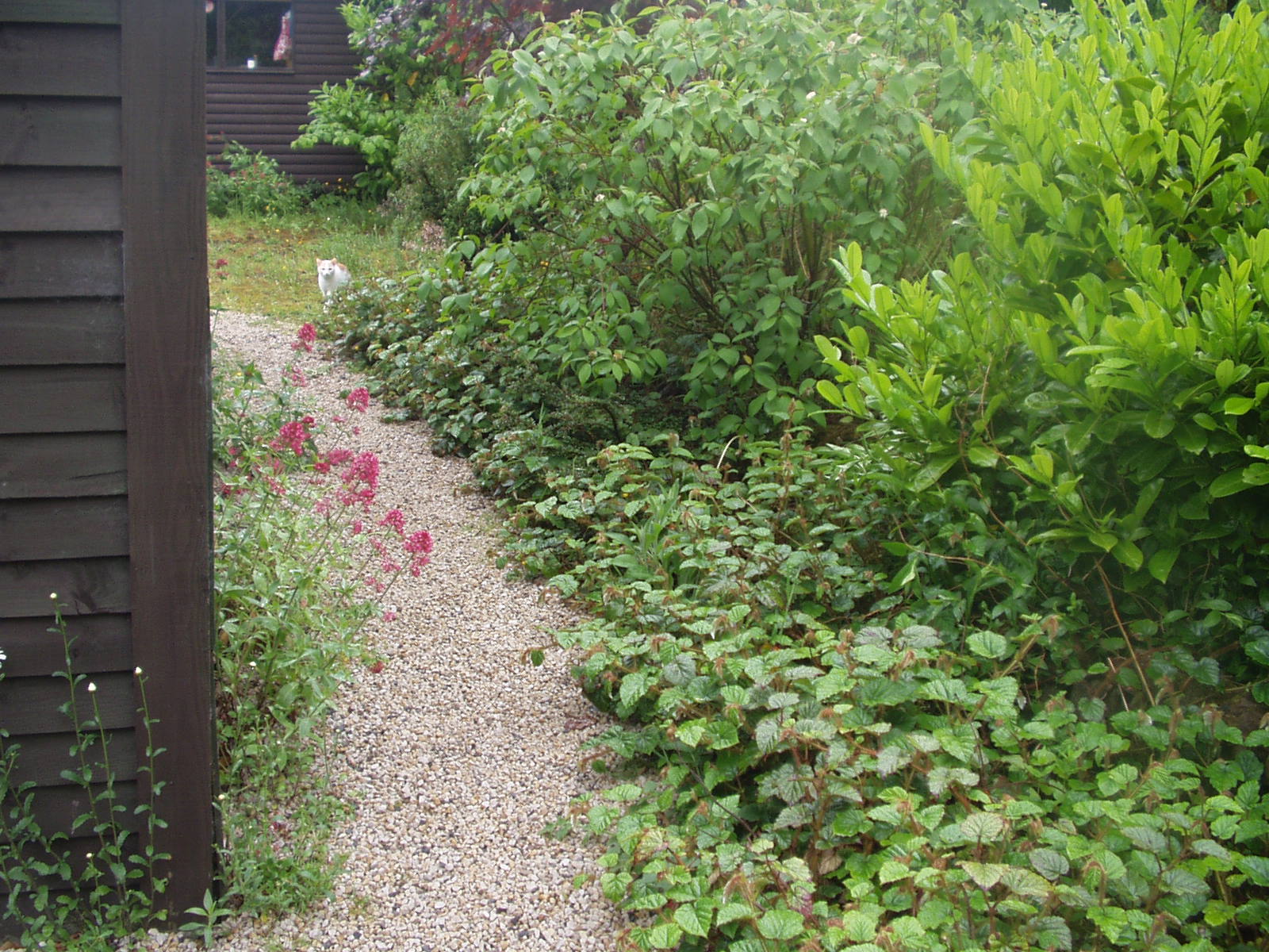 A garden path made from spare gravel and plant cuttings, together with scattered seed and wild flowers, cost: zero.