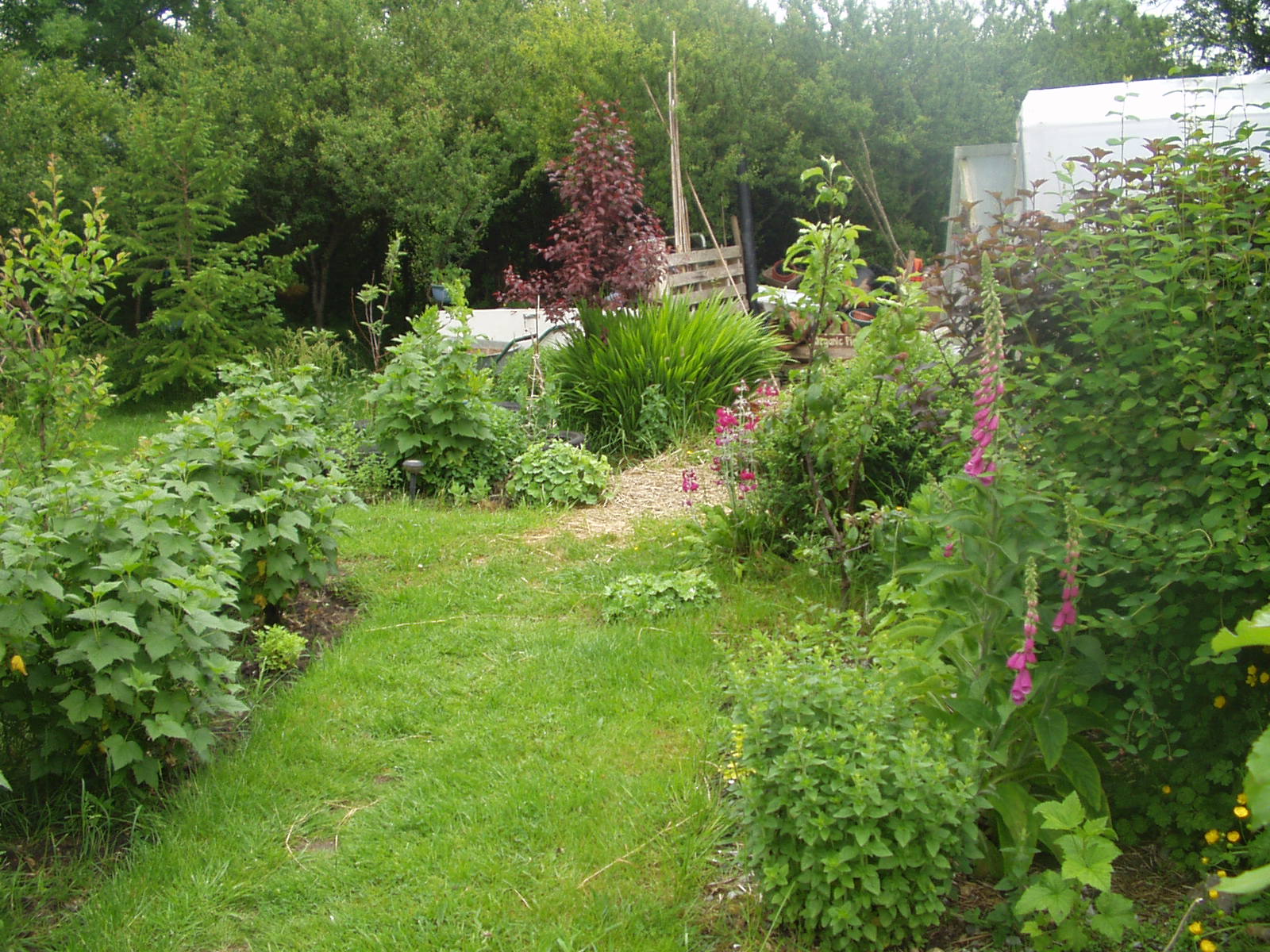 The path to the tunnel is bordered with foxgloves, beautiful in their ascendency this morning. You can see the Oregano and Blackcurrant cutting growing happily underneath.