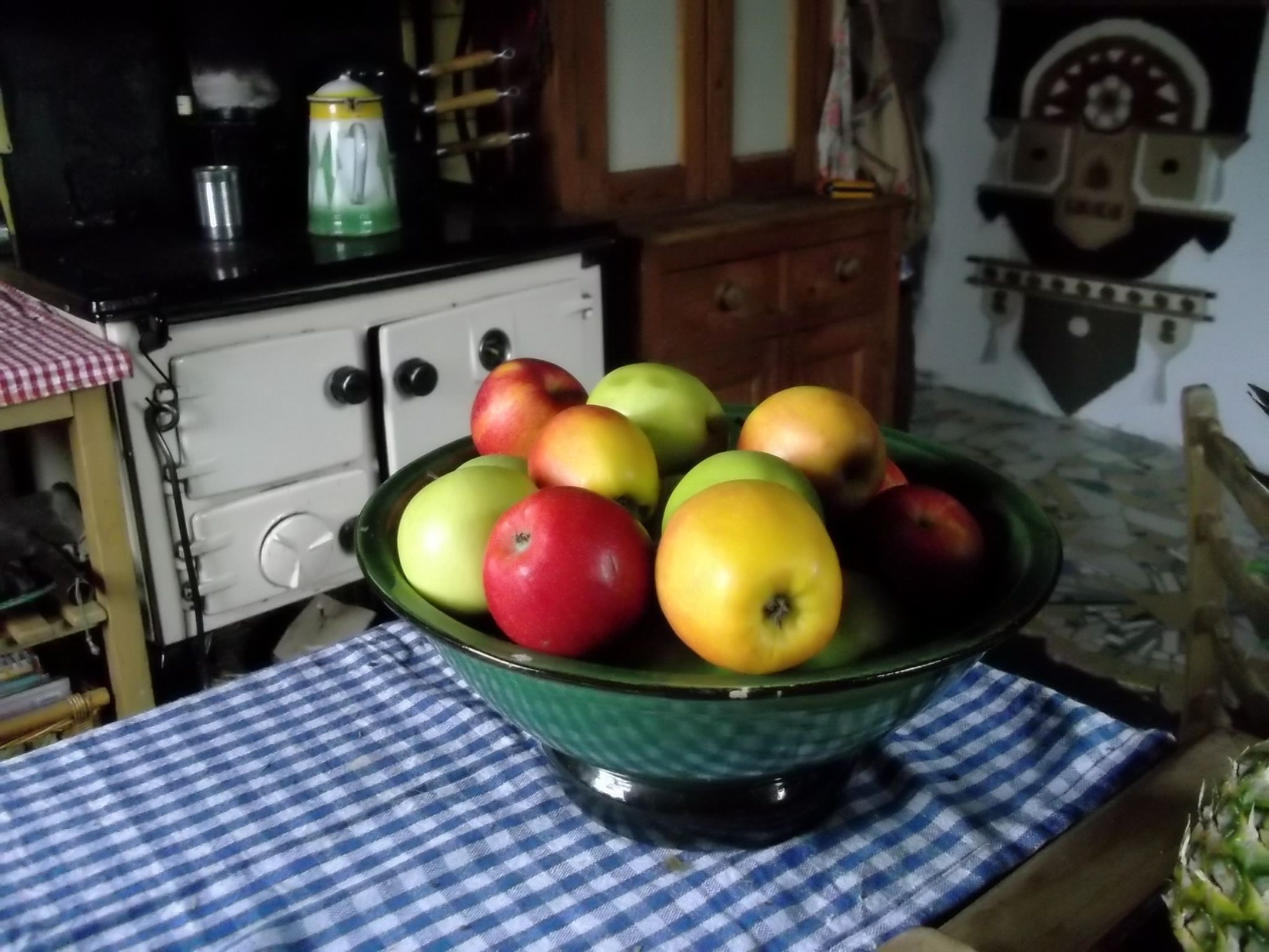 Winter is here, though it’s hard to believe! Flowers continue to bloom and leaves remain in the process of changing colour. Bowls of apples in the cottage create a sense of Autumn.